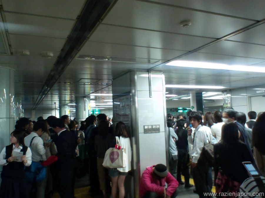 Tambien acabo de recordar, algo interesante que me tocó vivir el Lunes… Como ya sabeis de la depresión Postvacacional no se libra nadie. Parece que aun nipon no le hizo gracia que se acabaran las vacaciones y el lunes decidió que no iria a trabajar ni él, ni varios miles de nipones mas… Osea que se tiró a las vias para morir, a las 8 de la mañana! Si te quieres simplemente suicidar lo puedes hacer a cualquier hora, por la tarde o noche.. pero si te tiras a la hora punta un lunes por la mañana esta claro que lo haces POR JODER. Y asi me encontré el metro totalmente parado con los tipicos anuncios de «Jinshin jiko» (accidente con persona involucrada).. No podeis imaginar como estaba la estación, una masa gigante de humanos, millares de ellos, intentando llegar a sus trabajos o colegios…